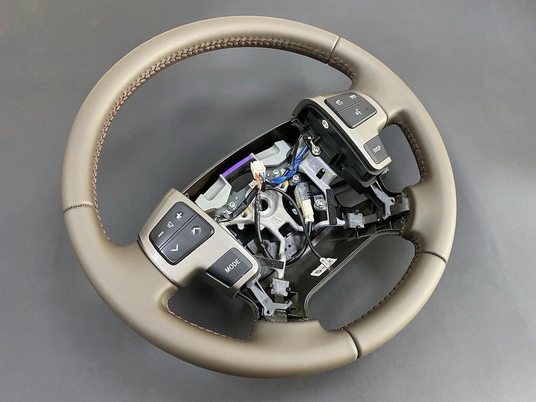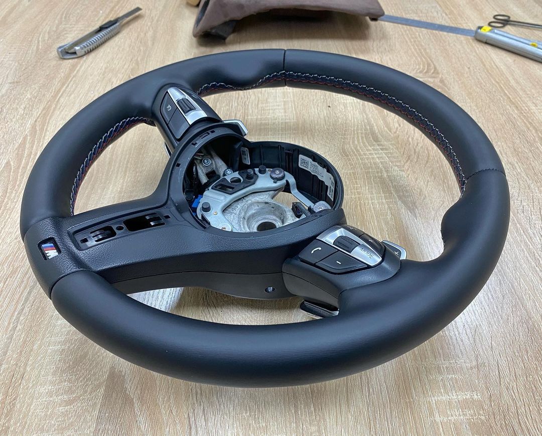 Из-за повышенной сложности работ стоимость перетяжки руля с подогревом составляет 180$. Мы работаем с натуральной кожей и алькантарой, предлагая широкий выбор стиля и текстуры.