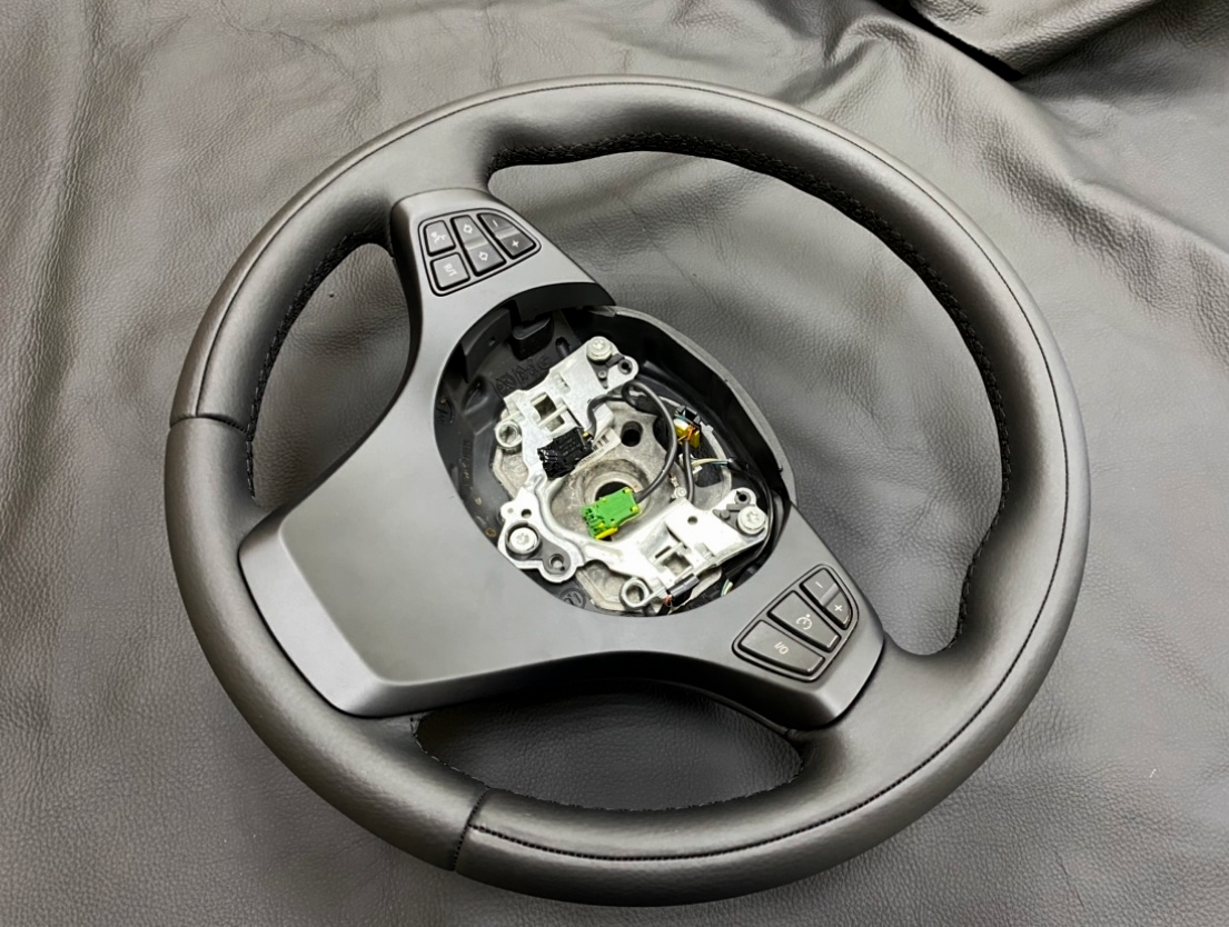 Після перетяжки кермо набуло преміального зовнішнього вигляду і поліпшених тактильних характеристик. Ідеально підігнана шкіра і професійна прошивка гарантують тривалий термін служби. Такий апгрейд не тільки підвищує комфорт від водіння, а й збільшує престижність автомобіля загалом.