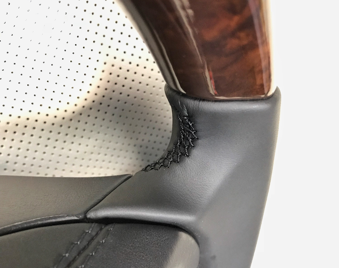 В даному випадку, нами було перешито кермо від автомобіля Alfa Romeo 159. Використовували шкіру Monza з перфорацією, а також італійську Alcantara, нитку Gutermann Calora